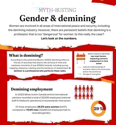 Gender perspectives in arms control, disarmament, and non-proliferation, particularly humanitarian mine action.